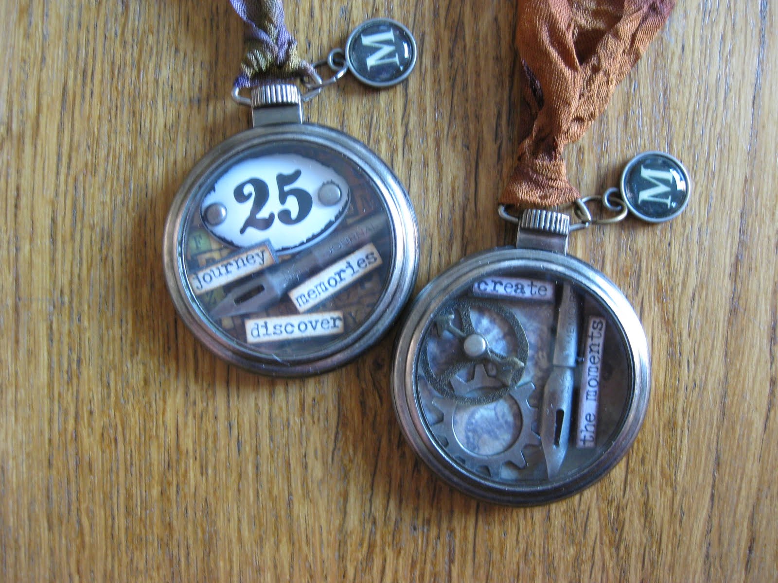 Ook hebben we op zaterdag een mini worshop gehad van Els.We hebben allemaal een horloge van Tim Holtz gekregen en die hebben we gevuld.Mama en ik hebben allebei een andere gemaakt.Links op de foto is mijn horloge.